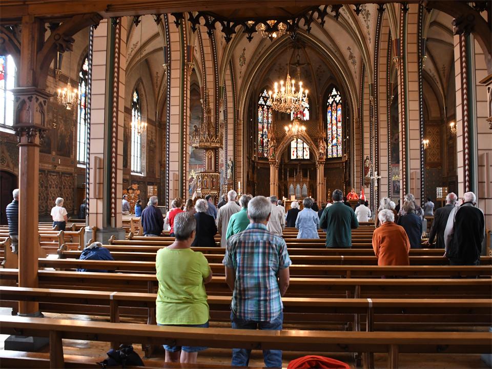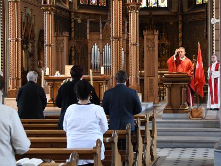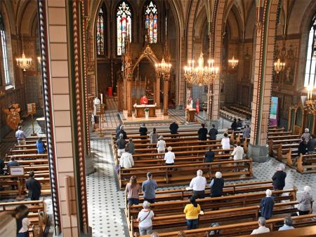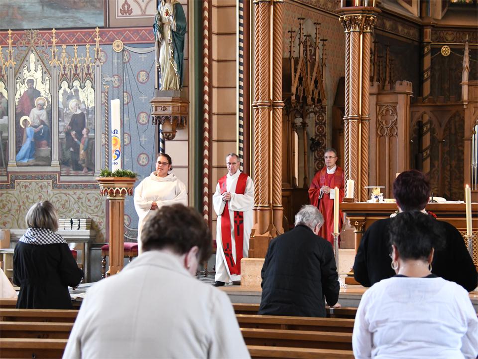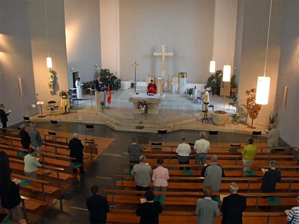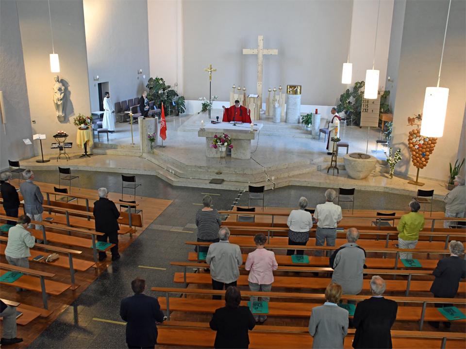 Zu Beginn des Gottesdienstes ist es noch ein gewöhnungsbedüftiges Bild, mit Abstand in Gemeinschaft den Gottesdienst zu feiern. Die Kirchen St. Maria und auch St. Peter waren aber schon gut gefüllt. Der Wunsch, miteinander zu feiern war doch gross! So war es doch ein schönes Erlebnis, gemeinsam miteinander zu feiern.