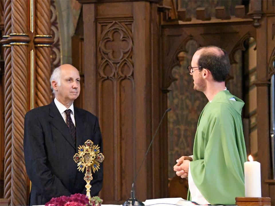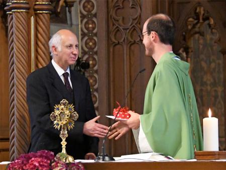 Nun ist es soweit: Du darfst dich in deine wohlverdiente Pension verabschieden. Wir danken Dir ganz herzlich für Deinen treuen und zuverlässigen Einsatz während den vergangenen fünfzehn Jahren als Mesmer hier in St. Maria. Immer konnte man dich in der Kirche antreffen, welche fast dein zweites Zuhause gewesen ist. Von manchen Erlebnissen könntest du erzählen. Einige davon sind zum Schmunzeln, andere aber auch weniger schön. Im Rückblick aber verblassen die unangenehmen Angelegenheiten. Wir hoffen, dass du mit guten Gedanken an diene Zeit als Mesmer zurückdenken wirst. Viele Menschen haben deine Art und deine Anteilnahme sehr geschätzt! Wir wünschen dir im neuen Lebensabschnitt eine Menge schöner Erlebnisse und alles Gute bei allen Neu-Entdeckungen. Gottes Segen soll dich stehts begleiten!
