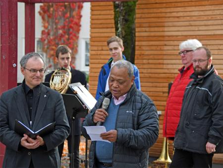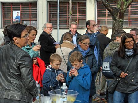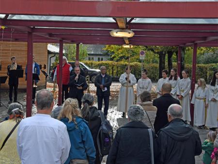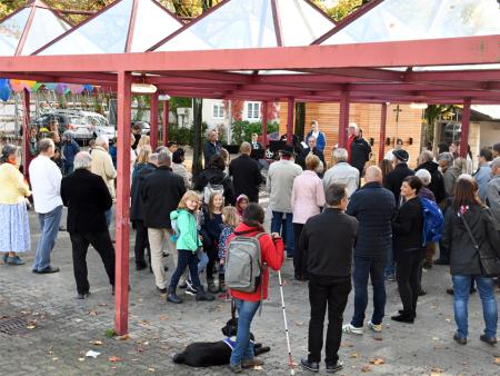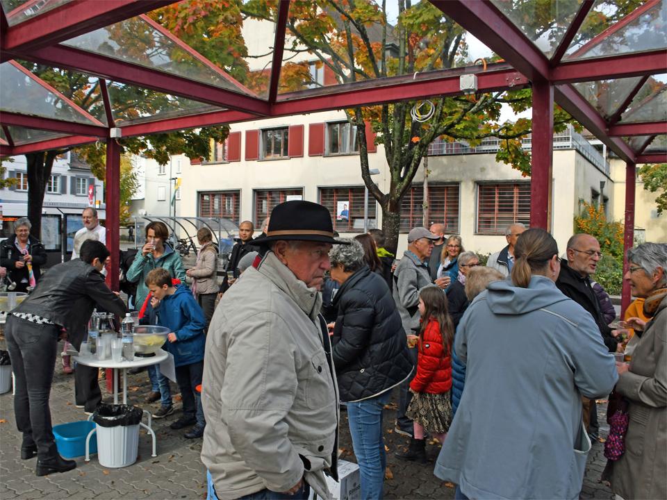 Papst Franziskus hat die Initiative ergriffen und den Oktober 2019 zum ausserordentlichen Missionsmonat ausgerufen. So haben sich am Samstag, den 19. Oktober rund hundert Personen, Kinder und Erwachsene, auf dem "Platz für alli" in Neuhausen versammelt. Pfarrer Adolf Büttiker begrüsste alle, die dem strömenden Regen getrotzt haben und nun bei Sonnenschein versammelt waren. Als Gast war Generalvikar Markus Thürig unter uns. Mit einem Impuls brachte er das Thema "Getauft und gesandt" ins Spiel. Über seine Gedanken konnten sich die Anwesenden austauschen und dazu von der feinen Beerebowle trinken, die vom Vorbereitungsteam angeboten wurde.