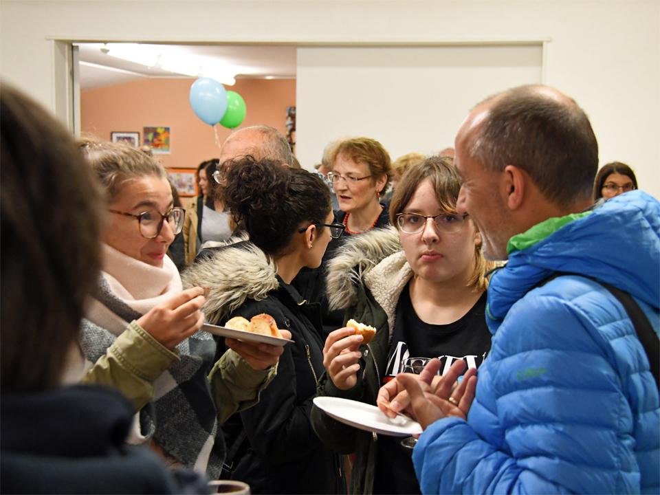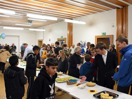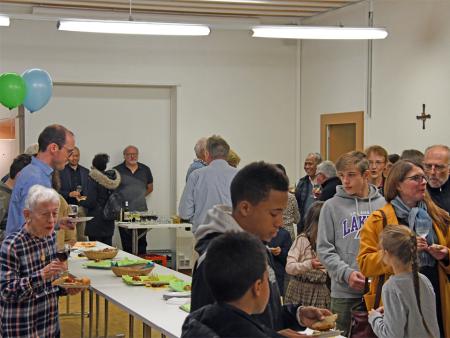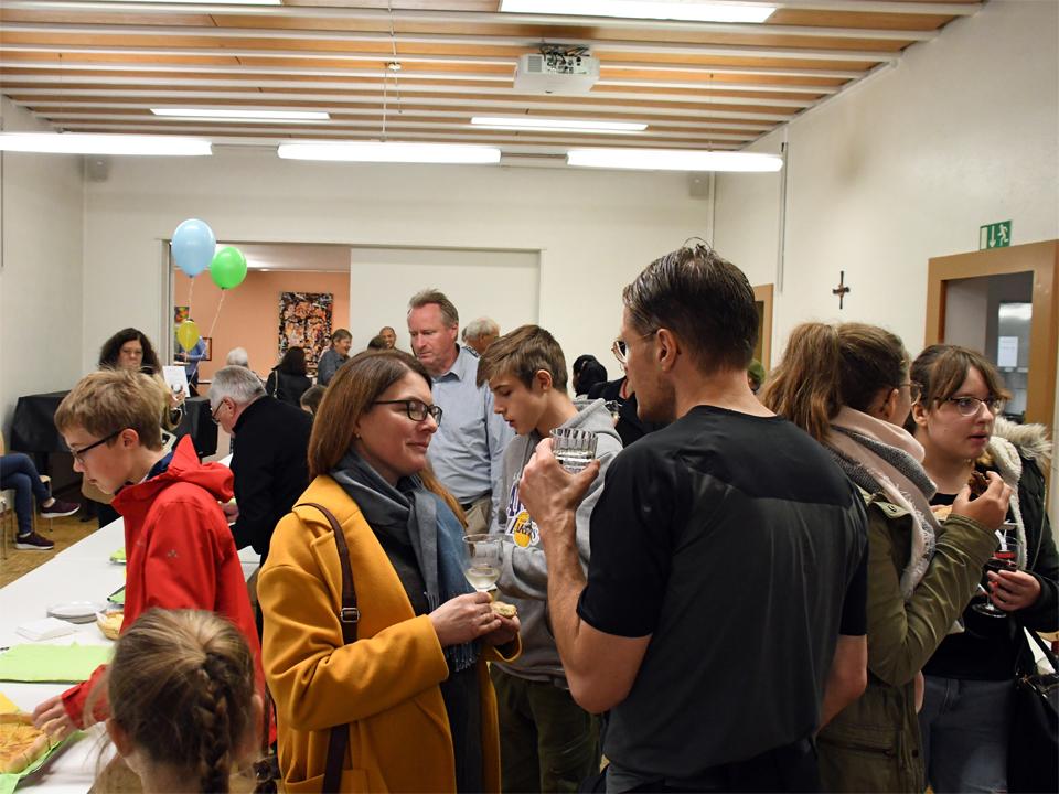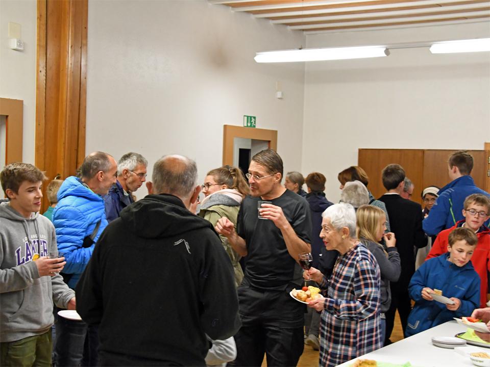 Anschliessend an den Familiengottesdienst trafen sich alle im Pfarreizentrum zum "Teilete"-Apéro. Eine muntere Schar fand sich zusammen und tauschte sich bei Häppchen und Getränken aus.