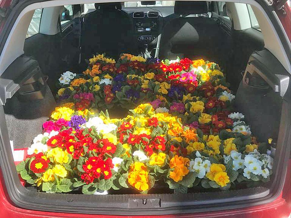 Ab Nachmittag des 16. März sind die Jugendlichen unterwegs und verteilen die Blumen.
