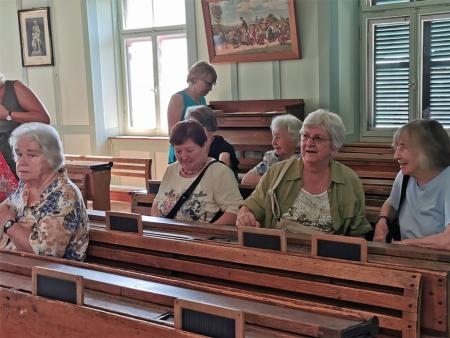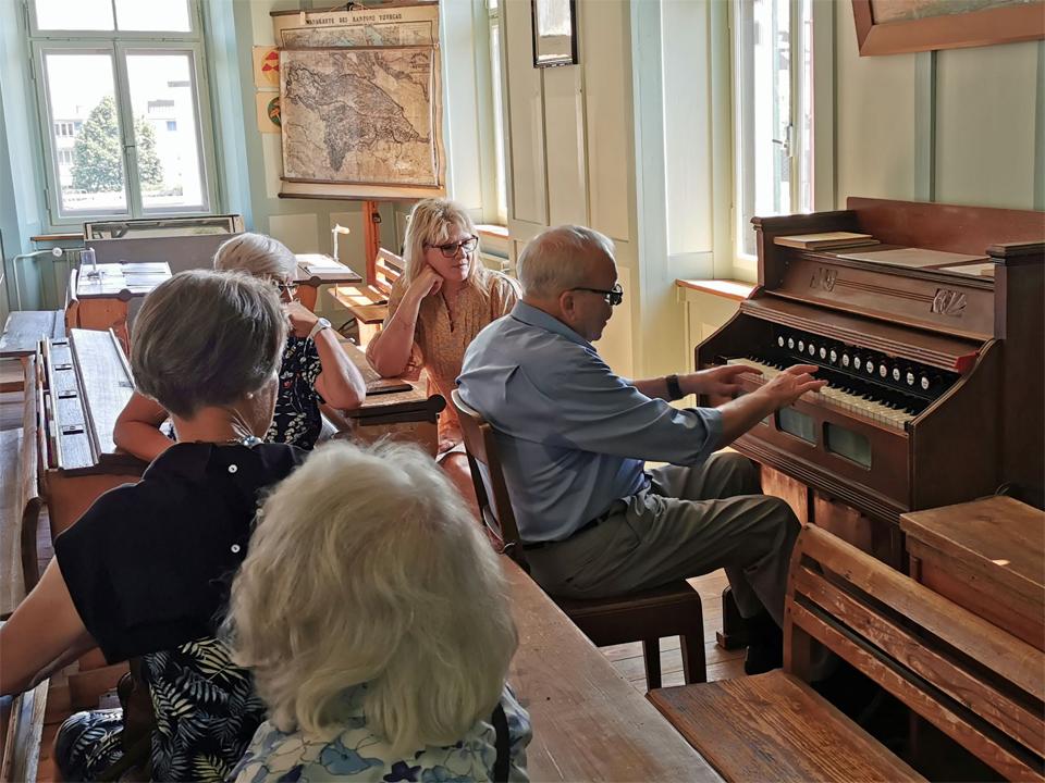 Der ökumenische Seniorenausflug ging diesmal nach Amriswil in das bislang einzige Schulmuseum der Schweiz. Viele Erinnerungen wurden geweckt und da und dort zu vernehmen… „oh ja, das hatten wir auch und wir mussten jeweils noch…“. Wie das Sprichwort: Ohne Schweiss kein Preis war es auch bei uns buchstäblich. Zuerst „in die Schule“ und tüchtig schwitzen. Dafür konnten wir dann „unseren Preis“ geniessen: Das Restaurant Seeburg in Kreuzlingen hat uns mit allem verwöhnt, was wir brauchten – neben Trank und Speis eine wunderbare Aussicht auf den Bodensee und in den grossen Park und immer wieder ein kühles Lüftlein, das wehte. Wir haben das Zusammensein und den Austausch genossen. Bis bald wieder!